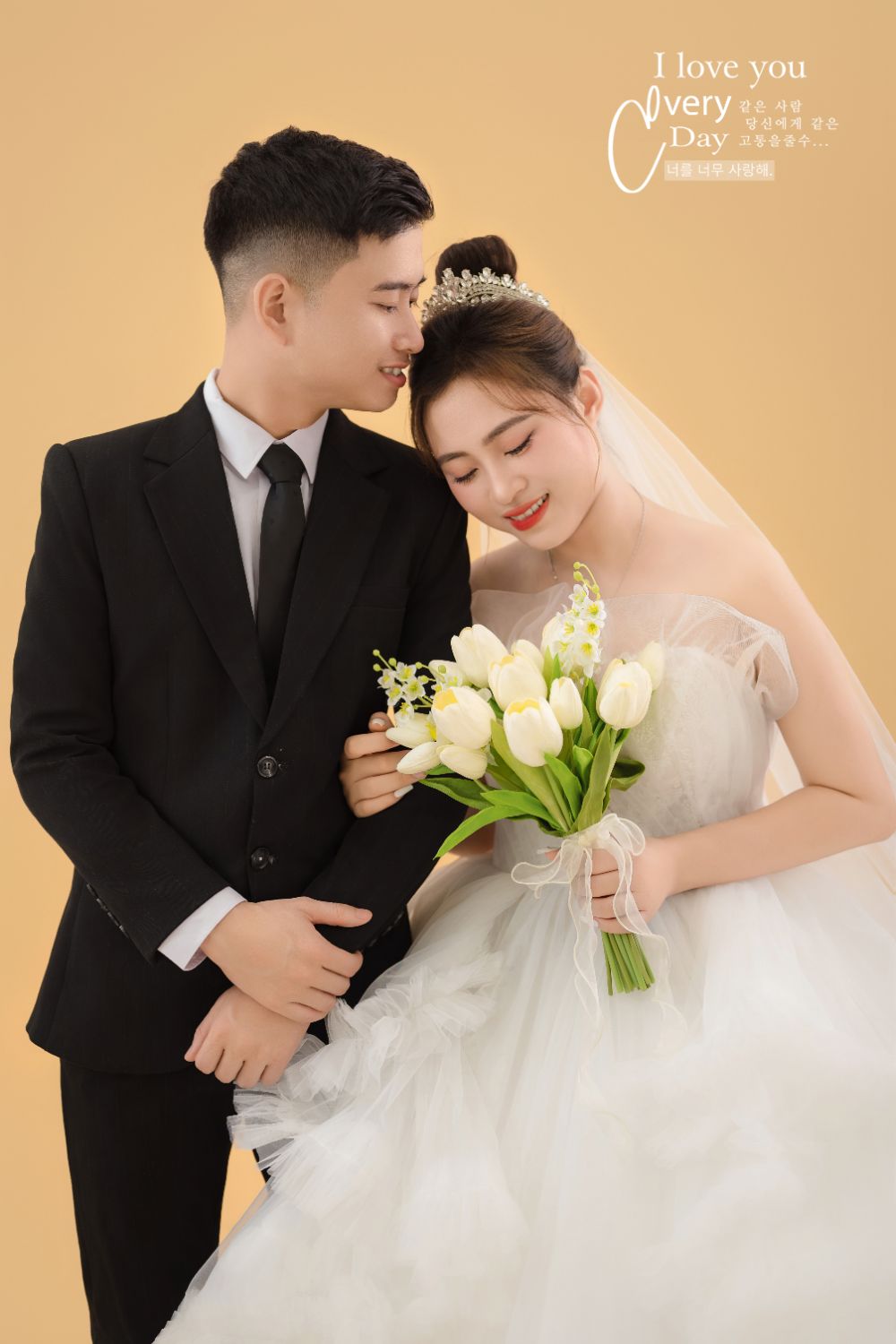 “Tiếng trái tim đôi ta đập thật nhanh. Thì thầm lời yêu thương. Ngày tình về chung đôi...” Sau bao nhiêu chờ đợi, cuối cùng ngày vui của chúng ta cũng tới rồi. Cảm ơn vì mình đã luôn là một phần trong cuộc sống của nhau. Em và anh không chỉ là người yêu mà chúng ta còn là tri kỷ. Ngày hôm nay, em sẽ là cô dâu của anh và sau này sẽ là mẹ của các con anh.